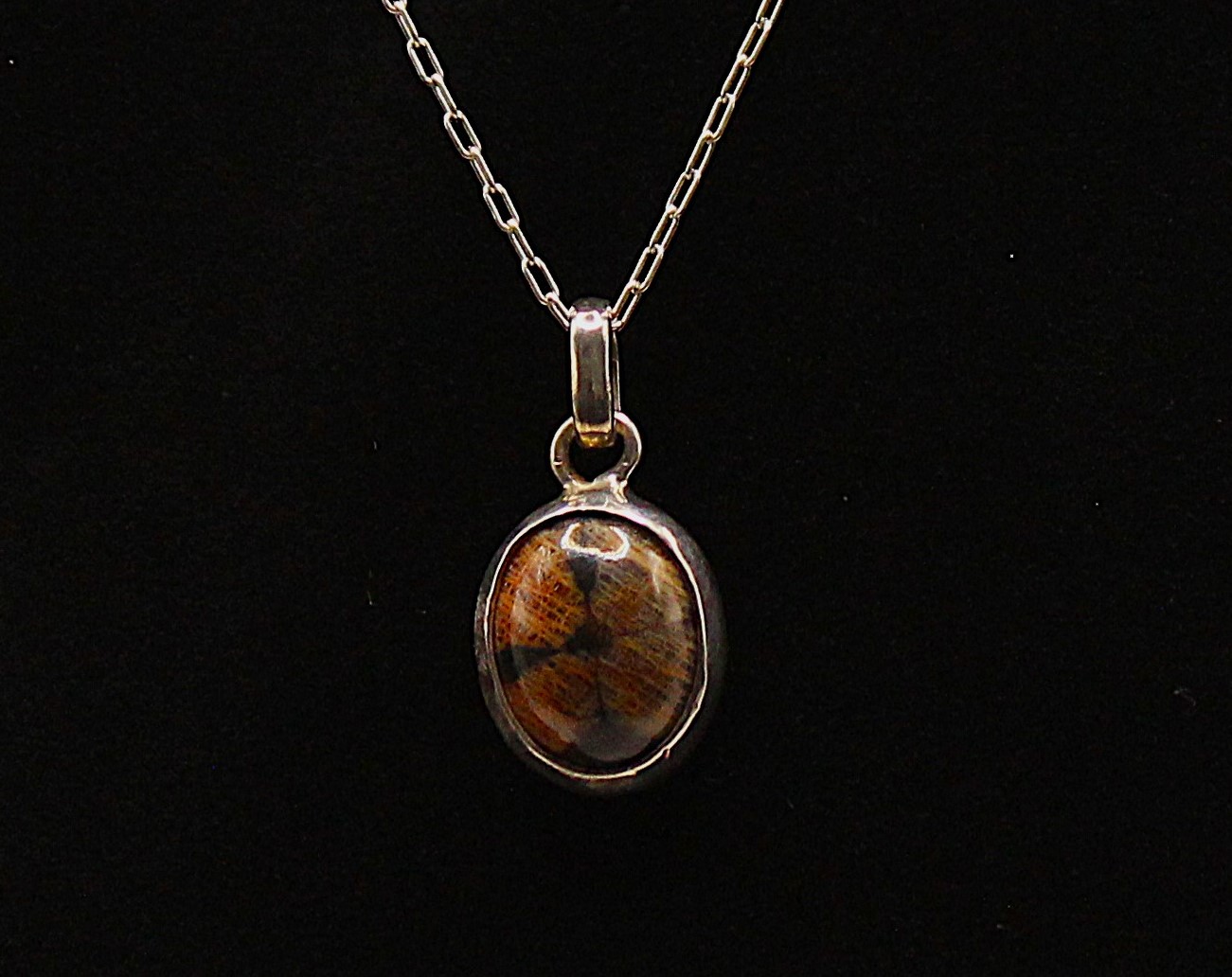 Chile Cross Stone Chiastolite Necklace, Sterling Silver.