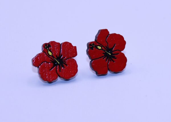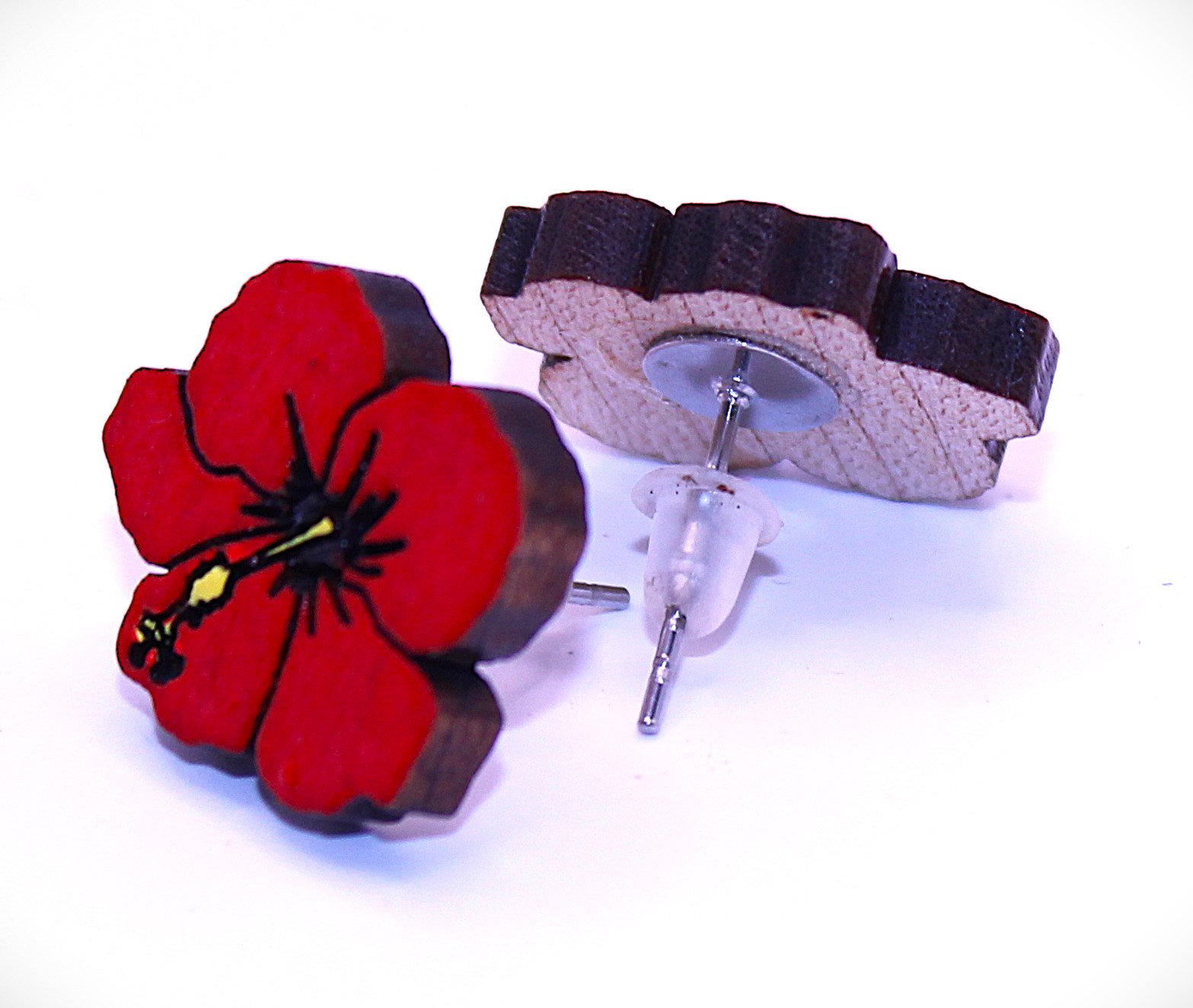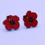 Dominican Republic Hibiscus Flower Hand-Painted Wood Earrings