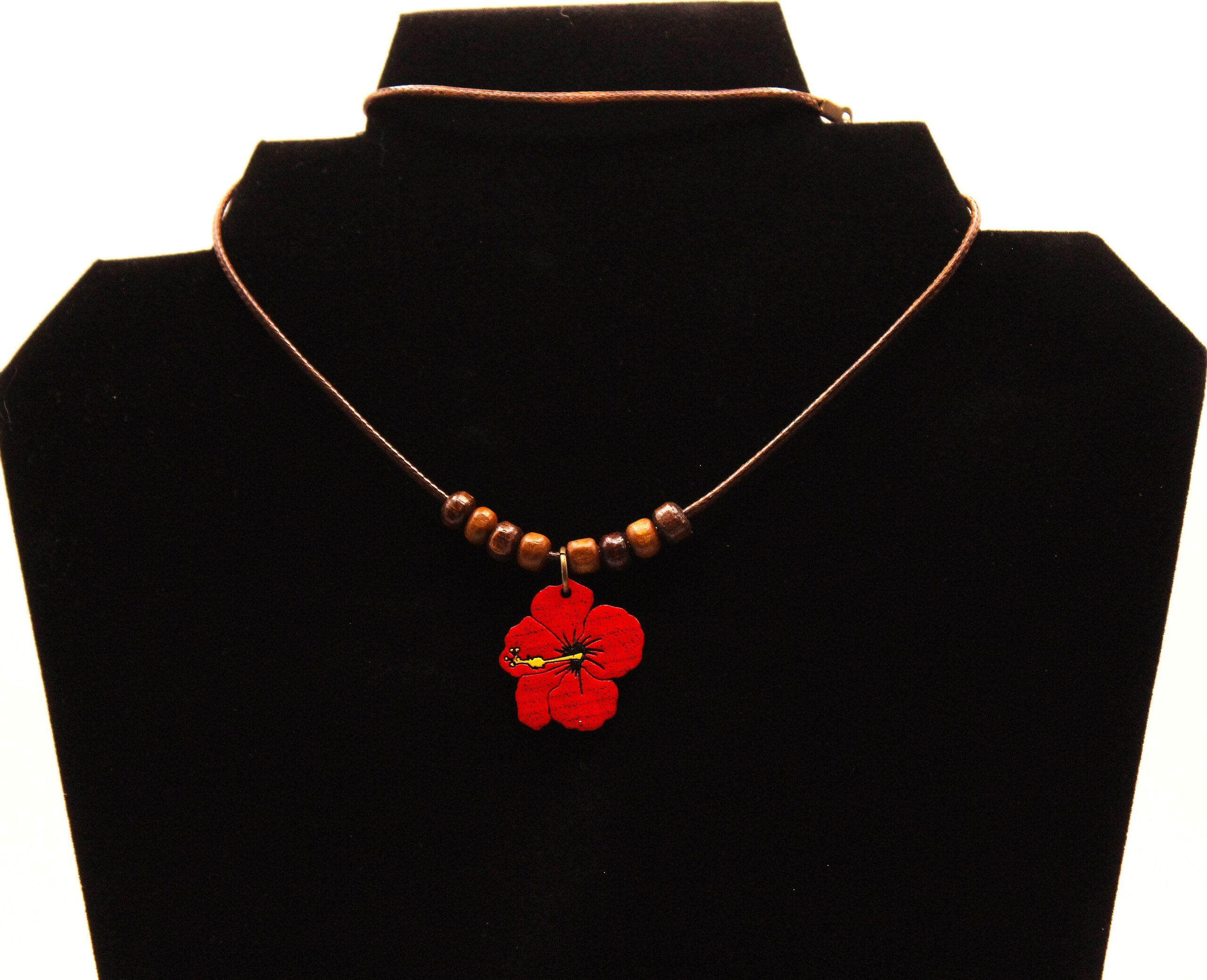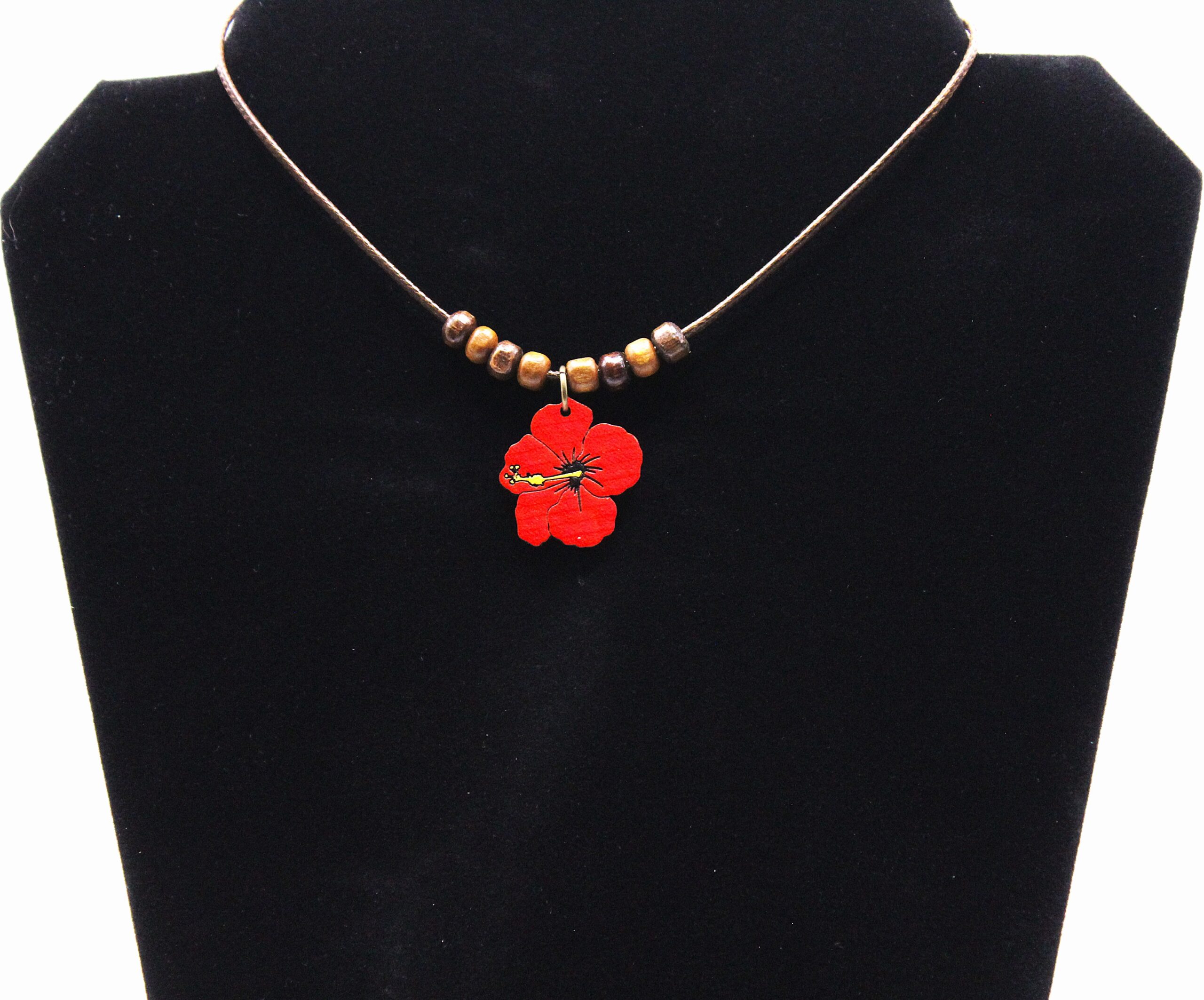 Dominican Republic Wood Hibiscus Flower Necklace